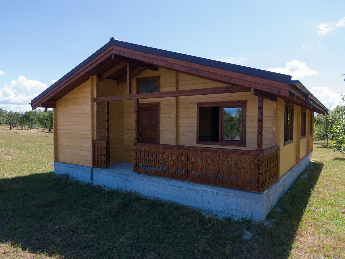 Exteriorul este finisat ca o construcție clasică, protejat de factorii externi, iar interiorul păstrează frumusețea naturală a lemnului, tratat cu lac transparent pe bază de apă, specific pentru protejarea și evidențierea fibrei lemnoase.