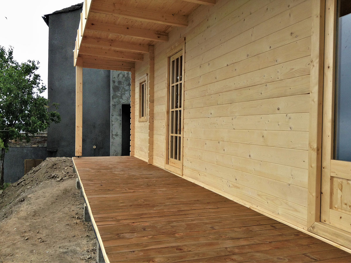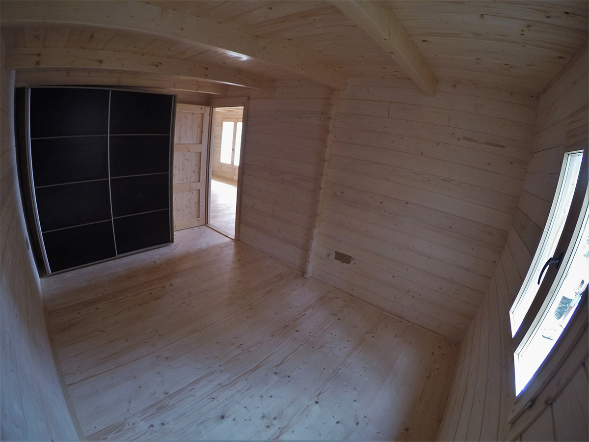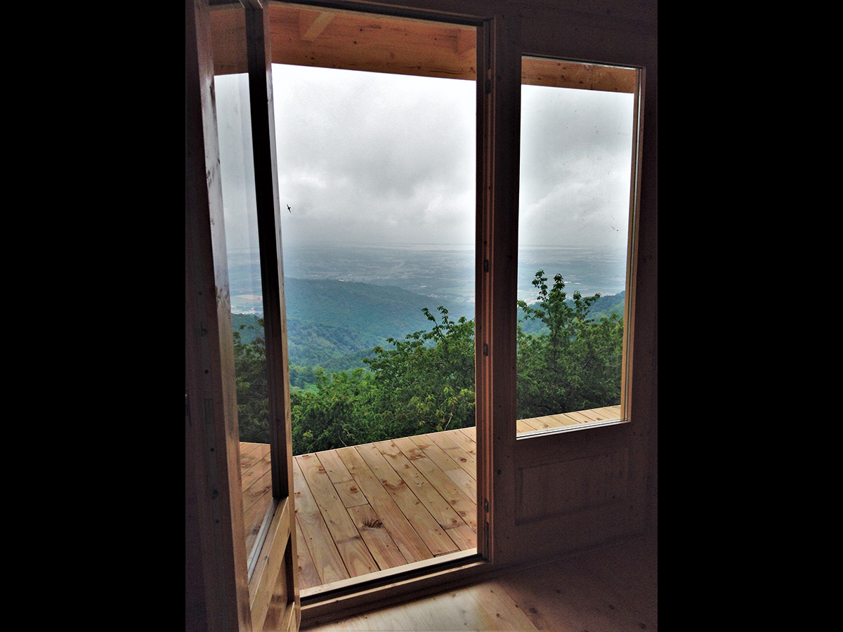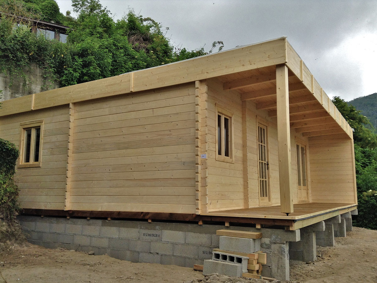 Casă mică din lemn, o altfel de casă de vacanță construită într-o zonă de munte, pe un teren limitat ca suprafață, unde peisajul se deschide către Marea Mediterană. Living-ul, bucătăria și locul pentru servit masa, sunt unite într-un open-space și orientate spre mica terasă deschisă către peisaj. Pe aceeași întindere parter mai regăsim o baie și două dormitoare.