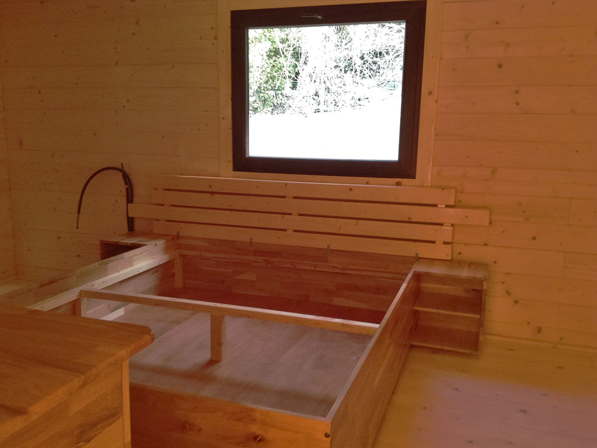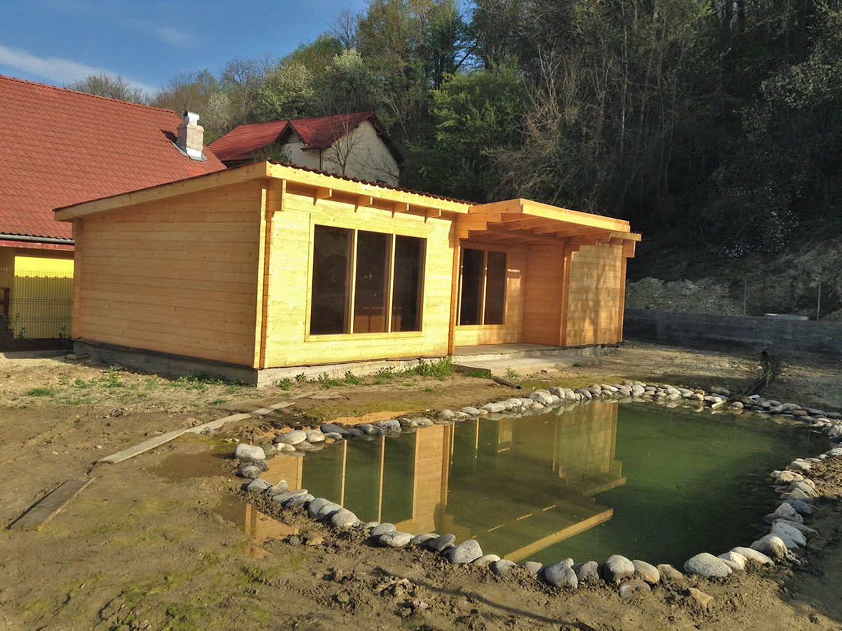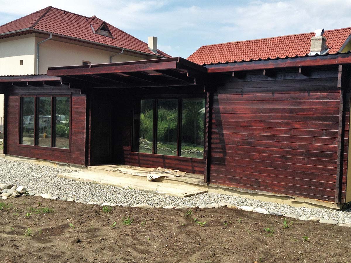 Spațiul din grădina casei principale a fost transformat în casă din lemn pentru oaspeți. S-a dorit lemn, o atmosferă relaxantă, dar nu imaginea de cabană.