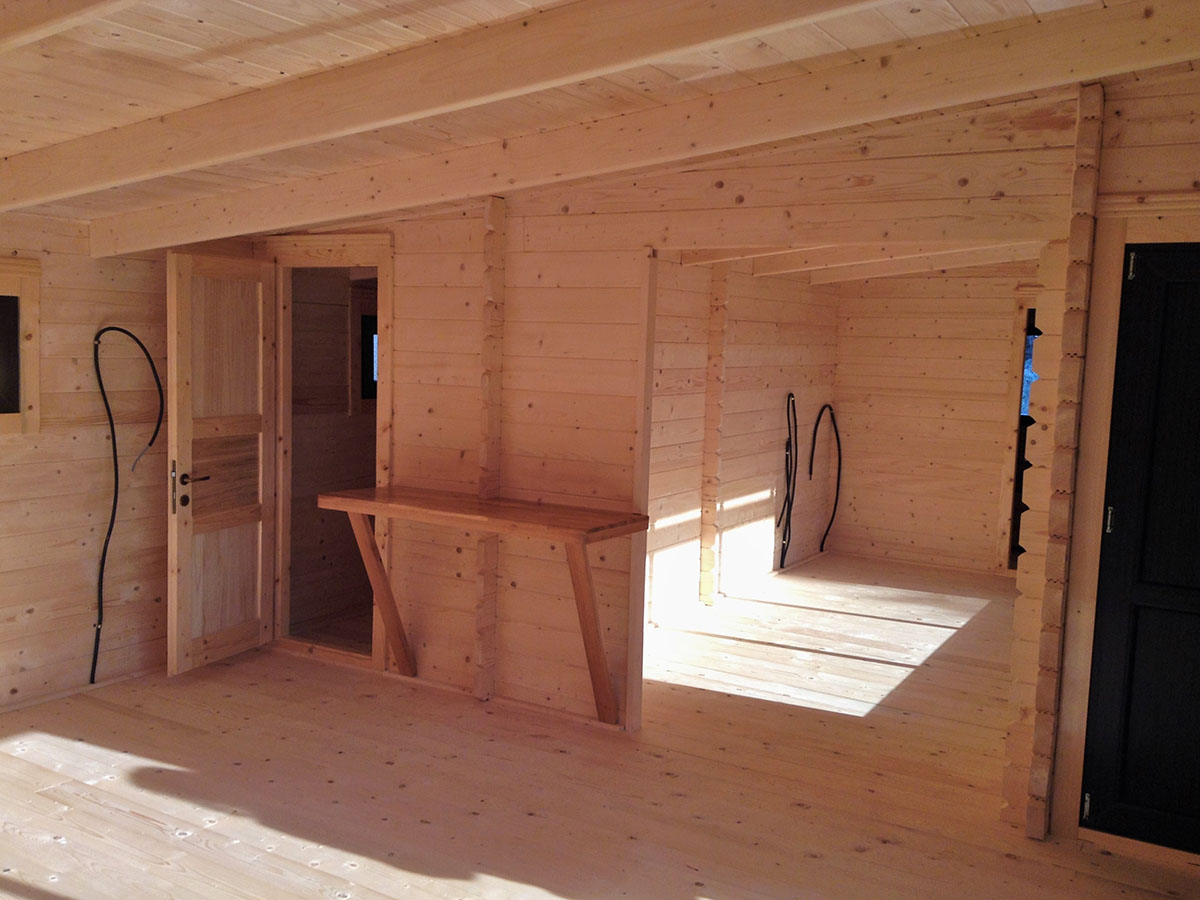 Structura casei este realizată din dulapi de lemn masiv de 60 mm grosime, îmbinați prin dublu nut și feder pe orizontală și chertați pe colțuri vertical, pentru stabilitate și durabilitate în timp.