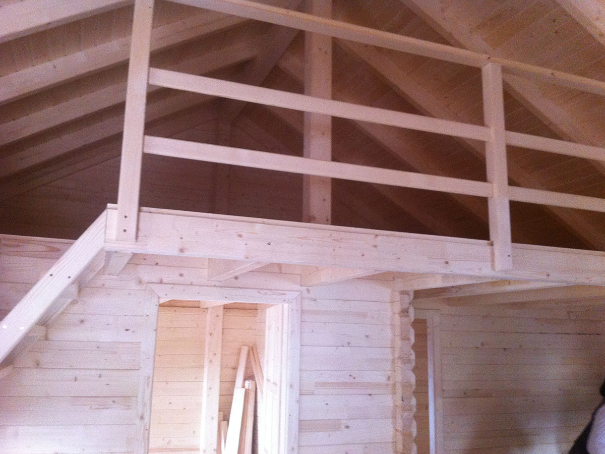 Casa din lemn cu mansarda si mezanin cu deschidere spre zona de living