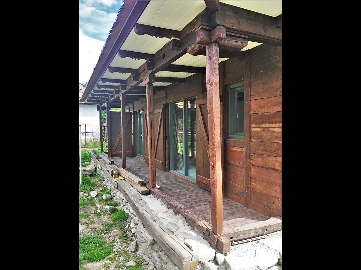 Casa pe structura din lemn, constructie restaurata cu lemn vechi recuperat
