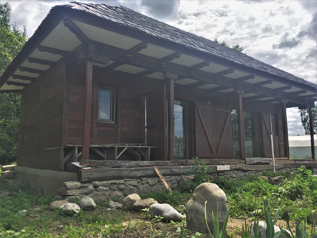 Constructie prefabricata placata exterior cu elemente restaurate din lemn vechi
