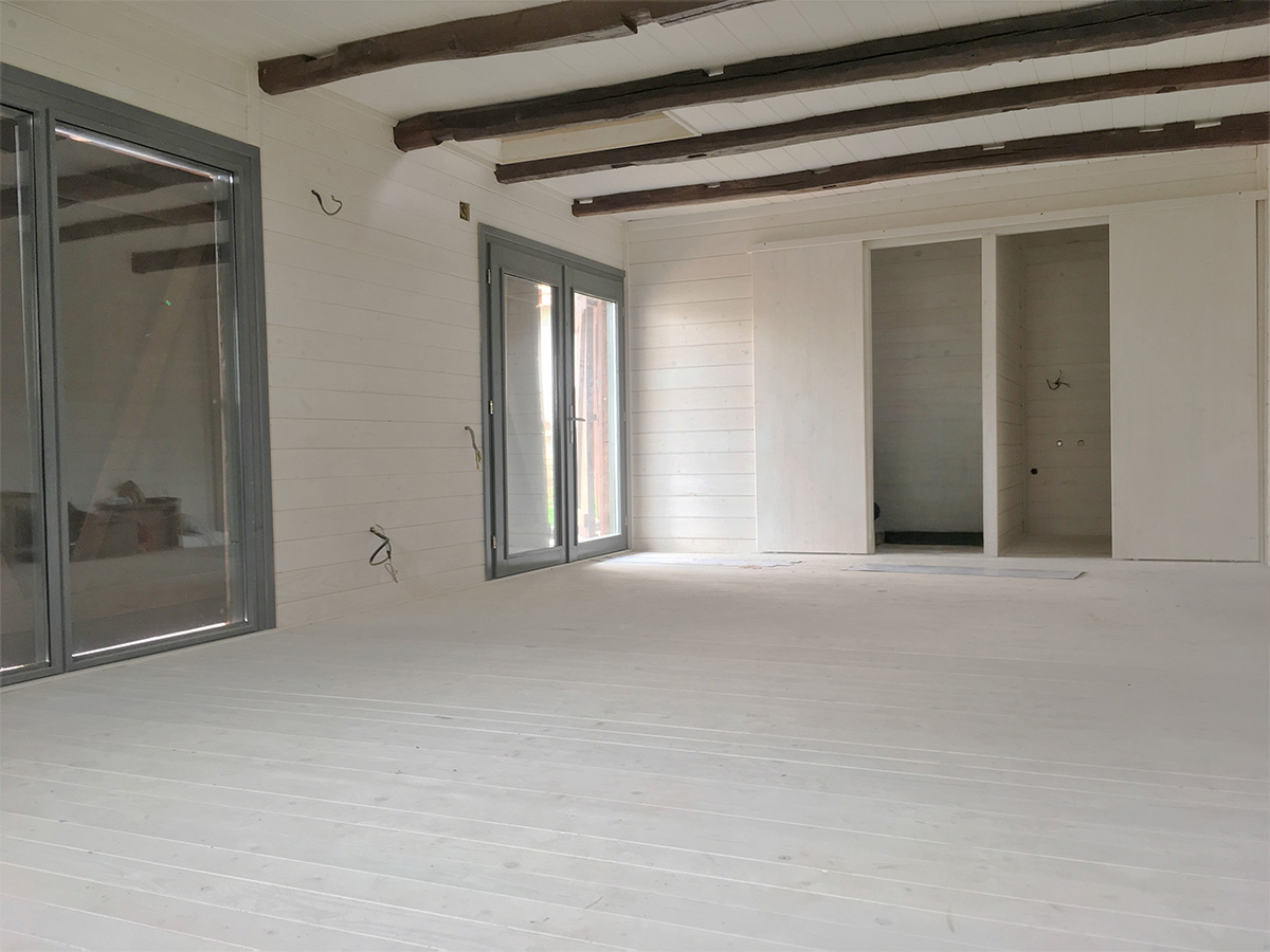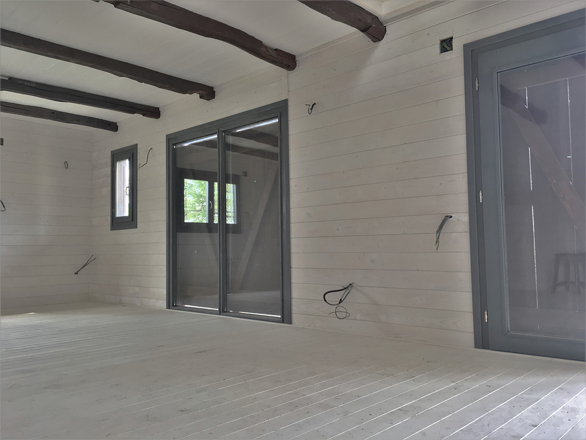 ● Interior caracterizat de o folie barieră de vapori și lambriu de 2 cm grosime;